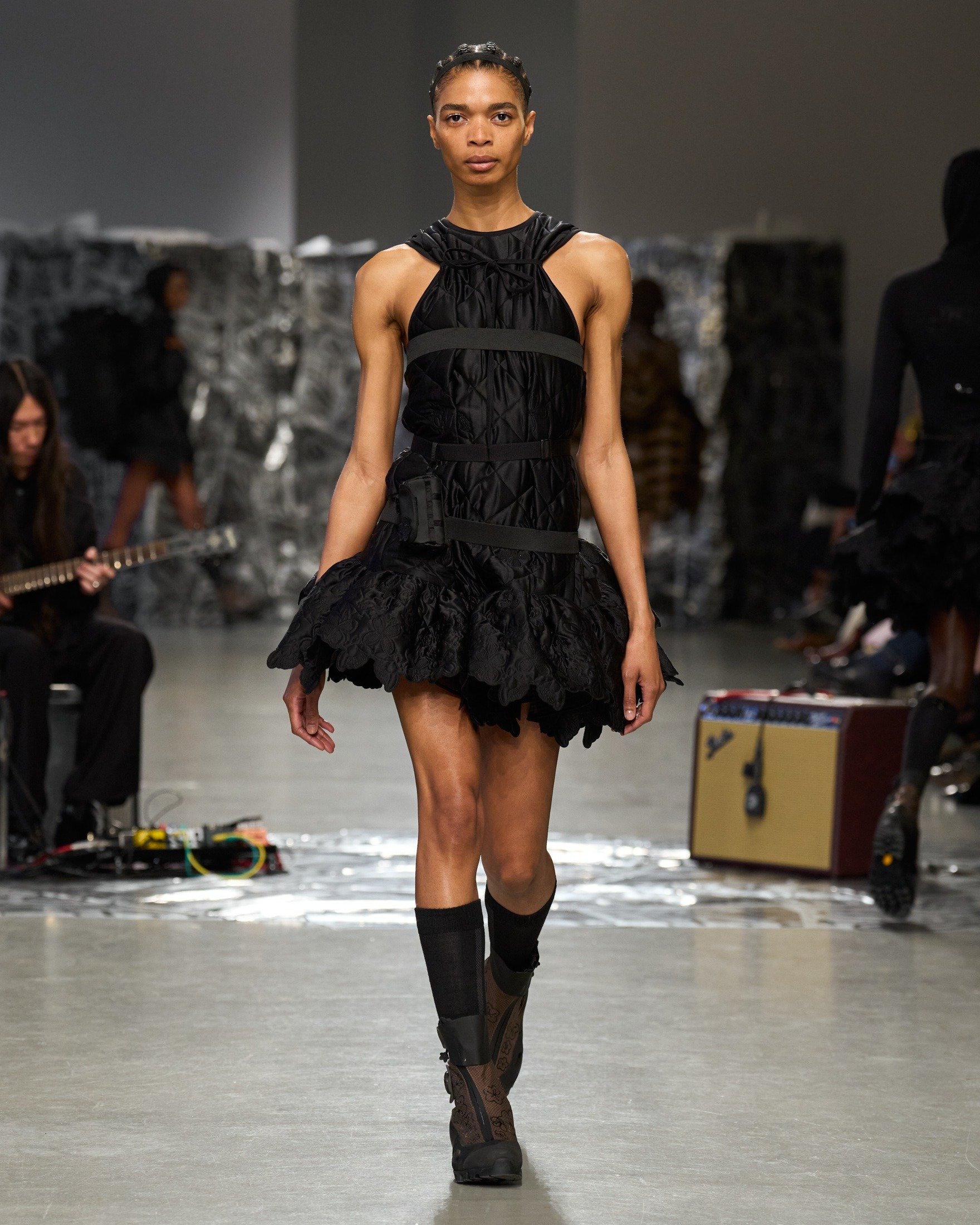 Re-imagining new silhouettes with a cherished bespoke quilt fabrication, the Bosco dress blends couture elegance with Scandinavian practicality. The sleeveless, drop hem silhouette takes on new shapes with a bow detailing pulled across the chest, and the waist cinched with a sportive buckle. Finished with an embroidered floral hem to offer layers of additional volume along the ruffles. Additional bows pull the look together at the back for even more signature romance.