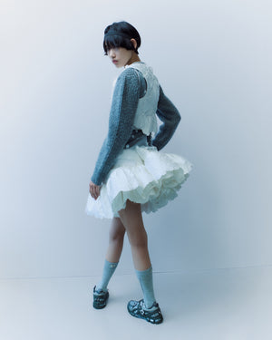 For Cecilie Bahnsen’s Pre-Fall 2025 collection, the allure lies in a nostalgic reverie juxtaposed with glimpses of the future—a string of memories and emotions weaving past and present into a narrative that expresses different facets of the brand’s universe. Cecilie's ethereal, hyper-feminine world gracefully draws upon memories of London grunge and the dark romance of her Scandinavian upbringing.