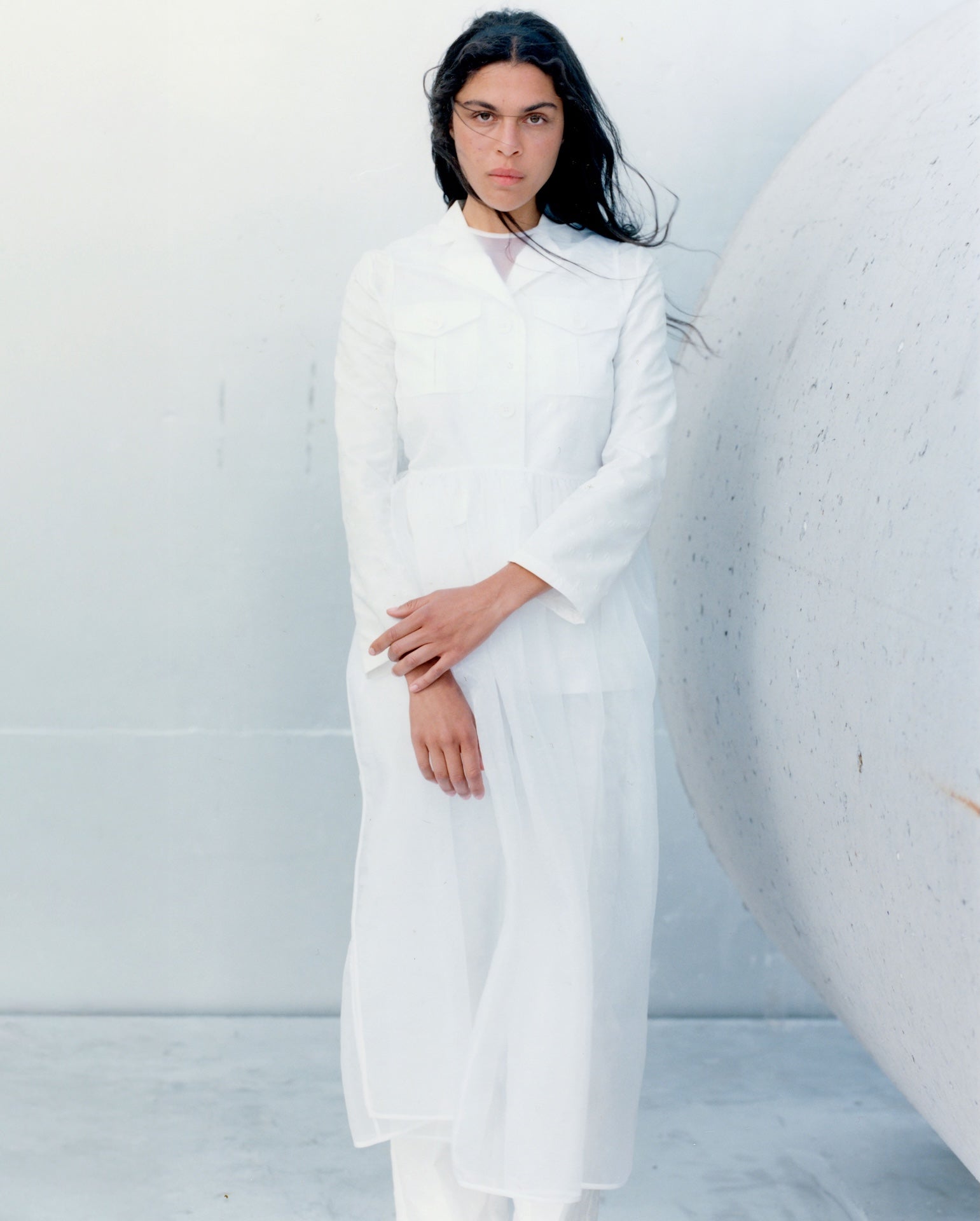 Transparency, structure, and newly developed textiles shape a collection that feels both grounded and luminous. Worn with instinct, each piece becomes an unfolding—an invitation into a world still in bloom.