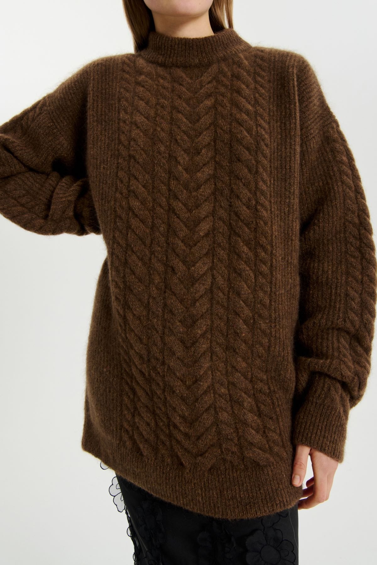 Introducing the Anette Jumper, a cozy oversized cable knit jumper offers both warmth and style. While braided mohair offers texture across the front, the plain construction across on the back adds a touch of simplicity. The jumperís folded round neck collar provides a classic and chic look, ideal to bring into the everyday.