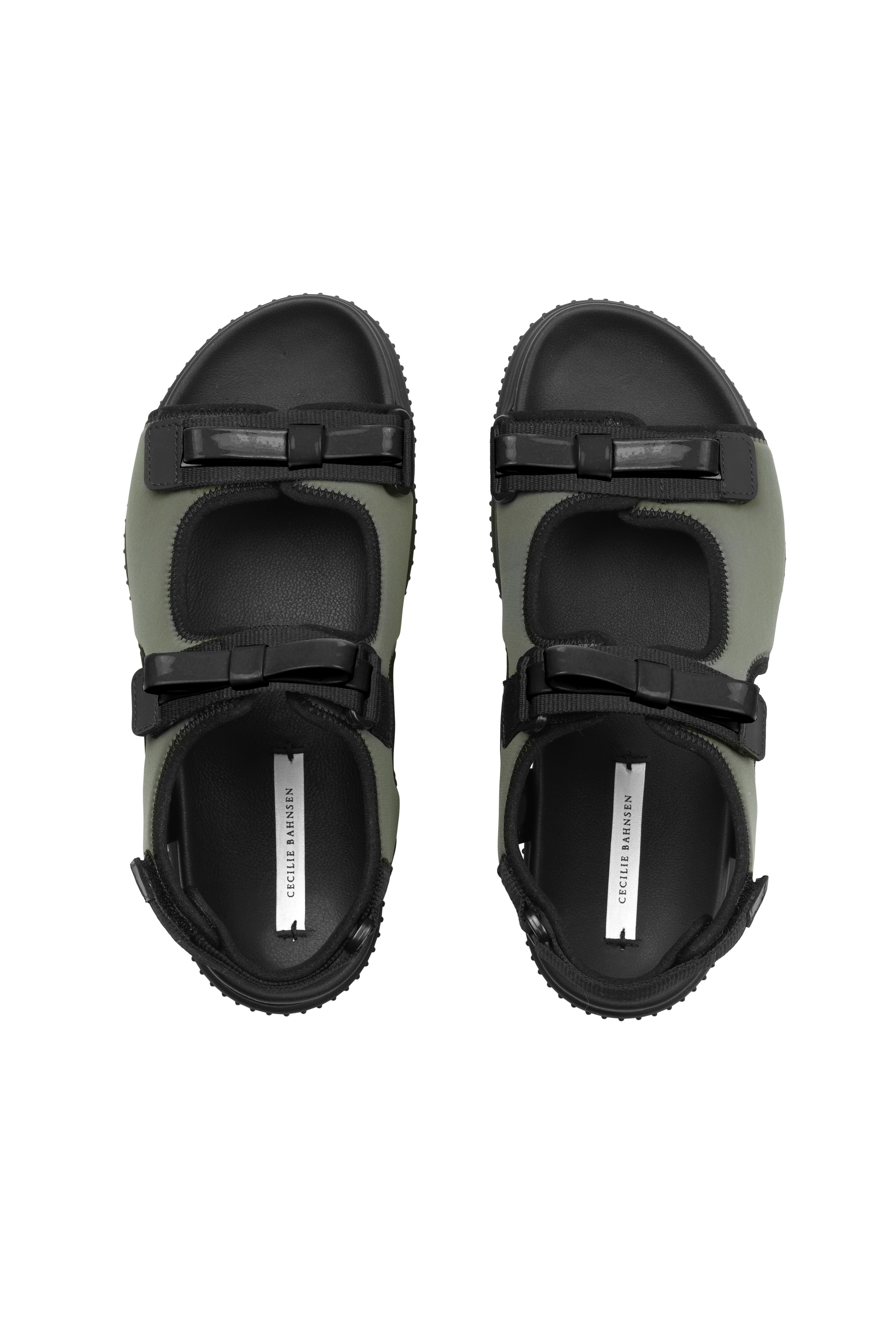 Where whimsy and practicality meet, the Valeria sandal in olive. Expanding on her assortment of footwear with urban adventure in mind, Cecilie Bahnsen introduces a new silhouette that balances comfort and forward-thinking design. Thoughtfully embellished with a bow for a romantic flourish.